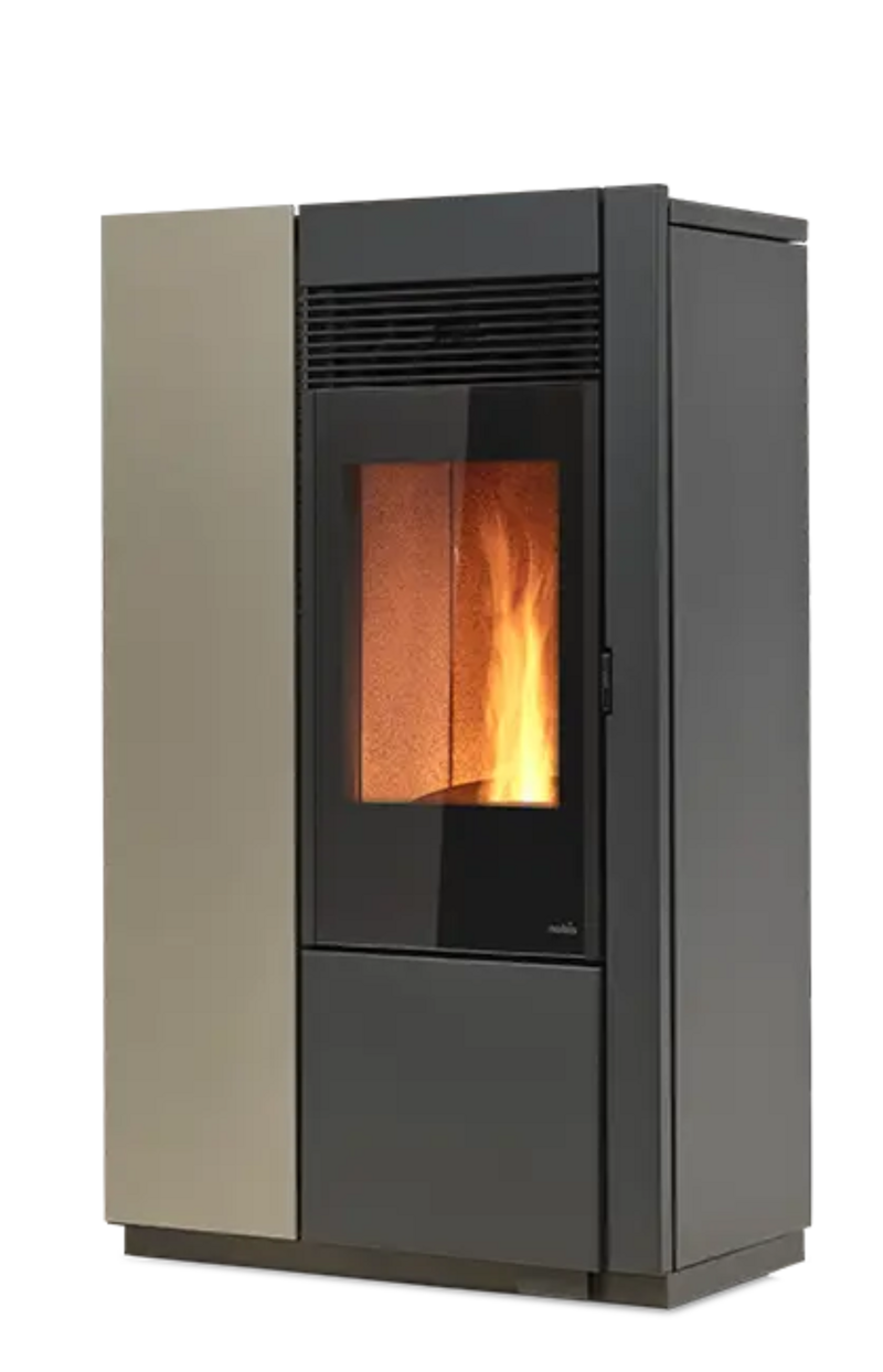 Stufa a pellet a ventilazione frontale con motore tangenziale 255 m3/h.