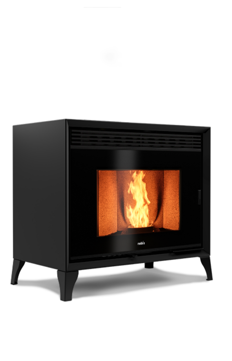 Stufa a pellet di dimensioni compatte a ventilazione frontale con motore centrifugo 400 m3/h