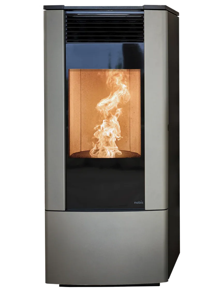 Stufa a pellet a ventilazione frontale con motore tangenziale 255 m3/h.